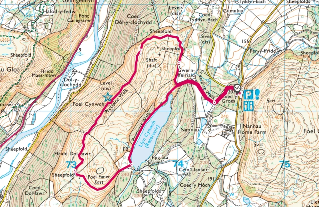 - Start Point: Precipice Walk Car Park, (Toilets) near Dolgellau
